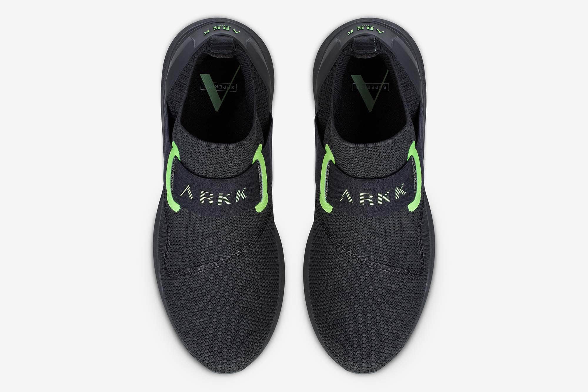 ARKK Copenhagen’s laceless Spyqon FG 2.0 is back. The single piece knitted upper features a bold elastic strap across the instep and striking accent colors. Built on top of the ultra-lightweight Hover-X1 sole unit, the Spyqon FG 2.0 is the essence of Nordic minimalism and precision detailing.